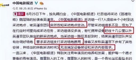 特别是那句话:“过边检可不是走红毯,法治面前可没有什么特权通道。”他们这些明星是不是混久了,都忘了法律面前人人平等是啥意思了呀。吴谨言这小姑娘。吴谨言就是个典型的例子,虽然她没把普通人弄得很惨,但她却老是恶性违约。不过这次她遇到麻烦了,因为她的合作方是cctv6的节目组。早就约好采访的事,结果不但迟到了,还临时换地方!